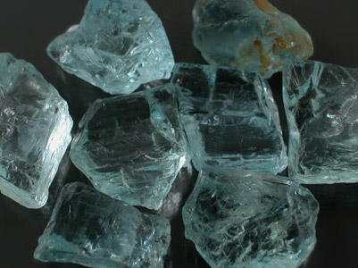 Awesome 100% NATURAL Pastel to Medium Dark Blue Aquamarine Rough lot from Mozambique. The lot is a mix of Faceting and Cabbing rough and is being sold as such. Overall, most stones do have at least minor inclusions and you will have to work out the inclusions or orient accordingly to get the maximum face-up appeal in any finished stone. We estimate that roughly 40% of the parcel is Facet Grade while the remainder is a mix of Cabbing Rough and additional Facet Rough. Many of the inclusions in this material consist of barely visible parallel needles or pinpoints that are barely visible unless oriented a particular way. You may be able to produce a cat's eye or two out of here with the right orientation and some hard work; however, I personally think any Chatoyancy isn't strong enough. We are confident that you will get some killer stones out of this lot with little effort. Just one cut stone should pay for the parcel! This is NOT small material as the average size is about 13+ Carats! This is a give away at our price and a deal not to be missed! The material truly has to be seen to be appreciated! |
