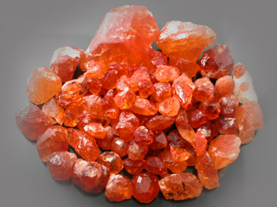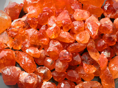 We are glad to be the first to introduce this wonderful new Mandarin Garnet from none other than Afghanistan! This material closely resembles the Namibian and better quality Nigerian Mandarin Spessartite Garnet Seldom Available in the market; however, many of the stones have a VERY subtle Peach overtone like we have not seen before. Many of these are the most Pure Orange stones we have acquired with some of the material being a Tangerine color. This is the best material we have acquired so far but we are still working on securing a buying contract with the mine owner. There were a few stones that initially came out going over 10 grams running the Mandarin Orange in color with very high clarity! Those stones however, held far higher value as Mineral Specimen and therefore we did not acquire them as Facet Rough. Since all Afghan finds are from Primary Deposits almost all of these stones show Crystal faces or natural etching with many showing high external luster. Many of these are nice LARGE chunky Crystal Sections with a bright Mandarin Orange color for the most part. There is one exceptional stone in here weighing in at around 75 Carats with some VERY Gemmy areas that may cut several Eye-clean to very slightly included stones in the few carats range. Most of these stones have some inclusions with the bulk being very slightly to moderately included with most smaller stones being EXTREMELY clean. These inclusions are typical for this Garnet species and it is extremely rare to find clean Mandarin Garnets in any size. This material is better than your typical Nigerian Mandarin for Clarity and we are confident it will produce some rare spectacular finished gemstones. Overall I think roughly 1/2 this material is good to high facet grade but we have seen far lower quality faceted selling for top dollar! Our price on this is better than most Nigerian and Namibian dealers for like quality material and we are confident that this will make any experienced Mandarin Garnet connoisseur VERYYYYY happy. |