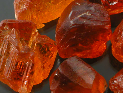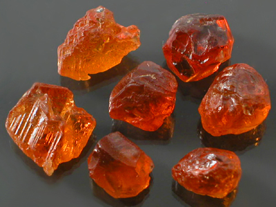 Fanta to Mandarin Orange Spessartite Garnet Top Faceting Rough from a fairly new discovery in Kunar, Afghanistan. You can read our write-up for this material in the Fall 2004 issue of GIA's Gems & Gemology. This material closely resembles the Namibian and better quality Nigerian Mandarin Spessartite Garnet seldom available in the market; however, many of the stones have a VERY subtle Peach overtone unlike anything we have seen before. Since all Afghan finds are from Primary Deposits almost all of these stones show Crystal faces or natural etching with many showing high external luster. Many of these are nice chunky Crystal Sections with a bright Mandarin Orange color for the most part. This lot is composed of select rough and most stones in here will produce Eye-Clean to Very Very Slightly Included finished gems with a little planning and hard work. Our price on this is better than most Nigerian and Namibian dealers for like quality material and we are confident that this will make any experienced Mandarin Garnet connoisseur VERYYYYY happy. Production at this mine is VERY VERY limited and it truly is a miracle that we can offer this material at all! If you have been longing for some Spessartite from an unusual location don't let this go by! |