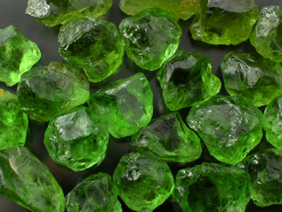 Great lot of Vibrant Apple Green to Olive Green Peridot Faceting Rough from a fairly new find in Ethiopia. This is a sweet lot of Faceting Grade Rough. This is almost all SELECT MATERIAL! We estimate that roughly 85%+ of this lot is High to Top Grade Facet Rough while the remainder is a mix of Cabbing and additional Faceting Rough that will need to be sawed and/or cobbed out. Please note that some of these stones do have VERY VERY minor inclusions and the lily-pad/veiling common to Peridot; however, I'm confident with a little hard work and some grinding you should be able to produce a spectacular gemstone from practically ever stone in this lot. This material is very similar to that typically produced in Arizona and varies in color slightly from piece to piece. There are some lovely stones in here and the lot is well worth the price! This is a liquidation price we have on this just to move it out the door so don't miss out!!! If you take a look around you will see there isn't much in new Peridot Faceting Rough entering the market and we don't know how much more of this material we can get! If this material were Pakistani in origin we would probably NOT be selling it for less than 2 TIMES THE COST! |
