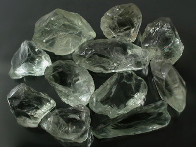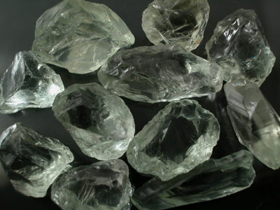 Pale to Pastel Green TREATED Prasiolite Faceting Rough Lot from Brazil. This is heat treated Amethyst and practically every one of these will yield Eye-Clean or better with relative ease. The lot as a whole is running roughly 95+% Top Facet Grade with the remainder having additional potential for Faceting. These are not small pieces averaging in at almost 40 CARATS EACH! These are well shaped chunky crystal sections that have been hammered clean and are ideally shaped for high weight returns. Considering the cost of synthetic material how can you go wrong picking this up to practice those new designs? |