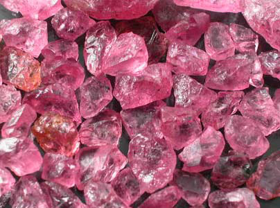 WOWWWWWWWW FOLKS! That is all I can say! In close to a decade we have only seen Pink Spinel from Tajikistan in the rough on a handful of occasions and usually in large sizes with unaffordable prices for everyone to enjoy a stone! The color on this is THE MOST INSANE PINK you will probably ever see! This material is from the Tajik/Afghan border, officially from Tajikistan from the Pamir Range in Gorno Badakshan (a stones throw from Afghanistan). The area is unfortunately extremely hot for drug trafficking (Heroin) and as a result everyone who crosses the border is practically strip searched. There are only a handful of people capable of transferring this material out of Tajikistan through Afghanistan because of the "right connections." There are others transferring it through other routes through Russia and we have been hearing that the Russian Mafia is directly involved in the other trading routes. This material is EXTREMELY limited and rarely available. Overall most of this material is very slightly to moderately included. We are estimating that roughly 30% of this is low to high faceting grade and much of that needs to be cobbed out from the rough. There are a few nice sized stones in here that will need to be cobbed out to produce a few larger pieces of cleaner Facet Rough. In addition, there is an unusually large stone in the parcel weighing in at almost 8 grams! The stone unfortunately is NOT clean; however, it does have some VERY gemmy areas that will facet though we would probably recommend a carving as being ideal for the rough. The remainder may produce some additional faceting material and/or could be used for cabbing. Most of this material is a decent size and the color on this is sure to please! Inclusions in this colored Spinel are ACCEPTABLE in Pakistan and in the larger sizes acceptable pretty much everywhere. Don't miss your opportunity to pick this up! |