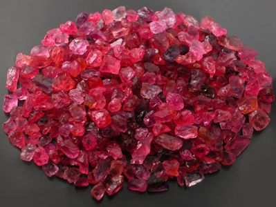 Spectacular Lot of Hot Pink to Fuchsia Pinkish Red Spinel Faceting Rough from Tanzania. This material is from a relatively new "old" mine in Matombo. The area producing this material actually belongs to a church and the locals come together to mine there from time to time. The mine has actually been active for well over 4 decades from what we heard but it is only worked sporadically. The stones overall have the most amazing Pink and Pinkish Red hues that are guaranteed to leave you breathless. The material overall is unfortunately a bit small averaging under a carat; however, this is some of the most electric material available and we have priced it to move QUICK! This stuff glows the most amazing RED under a Chelsea filter and it is a MUST have for the Spinel Connoisseur! |