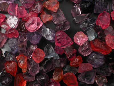 Spectacular Lot of Hot Pink to Plum Spinel Faceting Rough from Morogoro, Tanzania. Overall, the lot looks to be running roughly 60%+ High to Top Facet Grade with the bulk of the remaining 40% being silky lacking excessive fractures and/or inclusions. The silky material is ideal for cabbing and may even be good for faceting with a little marketing. This material is from a primary deposit and you may see a crystal or two in here as a result. The bulk of these are nice and chunky crystal sections shaped for high yield and we are confident you will take out some spectacular finished stones from here! This is ideal material for overseas cutting!! Spinel production in Tanzania is DOWN! The Tunduru mines are practically dry at the surface and any material unearthed from mechanized mining is kept by the mine owners who are generally foreigners. Morogoro material is virtually non existent in sizes over a gram in attractive colors generally commanding prices that are unrealistic. For the price on this parcel you really can't lose! |