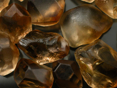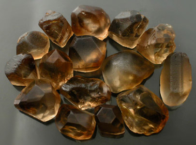 Awesome Cinnamon to Sherry colored Topaz Faceting Rough Lot. We acquired this in a recent buy-out we did and unfortuantely do not know the origin of the material or if it has been treated. The stones do show color zoning similar to what we have seen in old natural Russian material that was bicolored Blue/Sherry. The zoning is generally concentrated on opposite ends and almost looks as though it took place during crystal growth. It is almost like phantoming in some form. The lot is running roughly 95%+ Top Facet Grade and practically every one of these is an ideally shaped chunky stone capable of giving above average weight return. We have a VERY VERY limited amount of this material on hand so don't pass this up. |