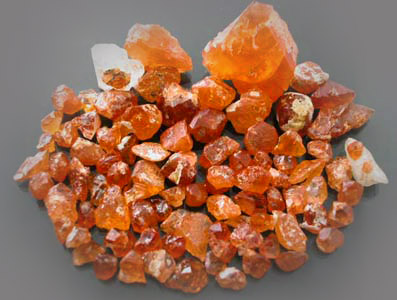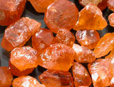 OK Folks, we have been hard at work for the last year trying to procure total buying rights of a New Spessartite Garnet Find and we are glad to say that we have acquired our first parcel of the material of which this is the first lot on our E-Newsletter. We are glad to be the first to introduce this wonderful new Mandarin Garnet from none other than Afghanistan! This material closely resembles the Namibian and better quality Nigerian Mandarin Garnet Seldom Available in the market; however, many of the stones have a VERY subtle Peach overtone like we haven't seen before. Many of these are the most Pure Orange stones we have acquired with some of the material being a Tangerine color. This is the best material we have acquired so far but we are still working on securing a buying contract with the mine owner. There were a few stones that initially came out going over 10 grams running the Mandarin Orange in color with very high clarity! Those stones however, held far higher value as Mineral Specimen and therefore we did not acquire them as Facet Rough. This lot has the most spectacular Mandarin Orange color. Since all Afghan finds are from Primary Deposits almost all of these stones show Crystal faces or natural etching with many showing high external luster. Many of these are nice LARGE chunky Crystal Sections with a bright Mandarin Orange color for the most part. There is one exceptional stone in here weighing in at around 75 Carats with some VERY Gemmy areas that may cut several Eye-clean to very slightly included stones in the few carats range. All of these stones have some inclusions with the bulk being slightly to moderately included with most small stones being EXTREMELY clean. These inclusions are typical for this Garnet species and it is extremely rare to find clean Mandarin Garnets in this size. Most finished stones will be very slightly included to moderately included. There are a few cleaner stones in here that will cut very slightly included or better with a little hard work; however, these tend to be smaller in size. Some of the stones do have very gemmy sections that are probably well worth the price of the lot itself that will cut smaller eye-clean stones. Overall I think roughly 1/2 this material is good to high facet grade but we have seen far lower quality faceted selling for top dollar! Our price on this is better than most Nigerian and Namibian dealers for like quality material and we are confident that this will make any experienced Mandarin Garnet connoisseur VERYYYYY happy. |