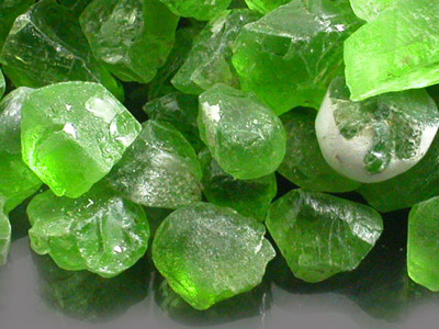 AWESOME HUGE lot of bright Vibrant Apple Green Peridot from Supatt, Pakistan. This is a SUPER SWEET lot of facet grade rough. Most stones in this lot should cut eye-clean or better with a little work; however, there are some stones that are more on the very slightly to slightly included end. We estimate that roughly 80% of this lot is facet quality and roughly 60% of the lot is TOP facet grade. Please note that many of these stones do have some inclusions and the white veiling common to Pakistani Peridot; however, I'm confident with a little hard work and some grinding you should be able to produce some spectacular gemstones. Most of these pieces in this lot are uniform in color consisting of the Apple Green that Pakistan is known for without the olive overtones. We got this lot at a steal and are confident it will leave the most discriminating of faceters with a smile on their face. There are some lovely stones in here and the lot is a steal for the price! |