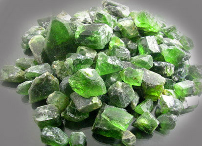 Great lot of Vibrant Apple Green Peridot from Supatt, Pakistan. This is a sweet lot of mostly facet grade rough with the Ludwigite inclusions Pakistani Peridot is known for. Please note that this material is not eye-clean caliber for the most part and is cut for its Inclusions! This material cuts stones similar to Quartz with Tourmaline needle inclusions and is an oddity in the Peridot world being only produced in Pakistan. Most of this rough is Faceting grade material; however, there are also a few spectacular crystals in here as well as some great cabbing rough. This material can be either cabbed or faceted as both bring out the beauty of the Ludgwigite inclusions. I'm confident with a little hard work and some grinding you should be able to produce some spectacular gemstones from this rough. This was purchased at a steal AT the Peridot mines and we are passing on the savings to you so don't miss out. |