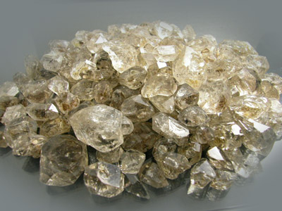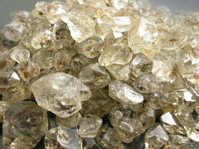 This is a NEW FIND of Quartz coming from Pakistan and is being referred to as "Diamond Quartz" in the local markets where it is sold. This material is extremely similar to Herkimer Diamond with a cool new twist. Many of these stones have wild black and/or liquid inclusions! Some of these look like they are three phase inclusions and have a solid, liquid and gas combination clearly visible to the naked eye while others look almost like insects! Some of these inclusions show up as a light yellow while others are clear. Local sellers are saying that the Black inclusions are Carbon and the Yellow and Liquid Inclusions are Petrol or Gas. We have heard of this Quartz referred to as Hydra Quartz and some have referred to the inclusions as being composed of water. Whatever these inclusions are composed of this material is selling out here at a phenomenal rate. I have been told that some of this material fluoresces under UV light; however, I don't have any UV light to test it so there are no guarantees on it. This is the second type of Quartz that was found in the region it is being mined and the first material started out at about $20.00 a kilo out here and peaked at about $500.00 per kilo before the mines were exhausted. Now the old material is no longer being produced and the price has been climbing higher and higher for it. I think this is a great investment lot as you really can't go wrong with the price on this. There is a very limited amount of this in the markets in Pakistan and it has already begun to climb in price EXTREMELY quickly. Many of these are excellent examples of Fadden Quartz that Pakistan is well known for with quite a few exhibiting new features unseen before. There are new black inclusions and weird internal etchings located inside the Quartz crystals. This material really shouldn't be faceted as it is a hot collectors item; however, I think faceting a stone with a three phase inclusion in the center would probably just blow people away! Please note that most of these are crystal sections having perfect razor sharp termination at both ends and SUPER luster. The cleaner material looks virtually identical to Herkimer Quartz while the included material is definitely worth picking this lot up for! |