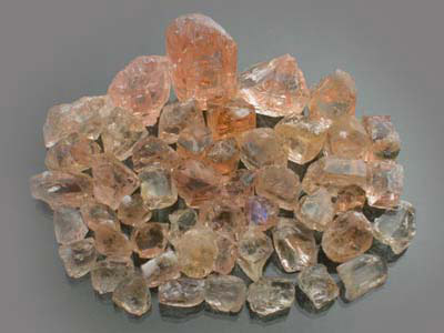 Insane lot of COLOR CHANGE Imperial Topaz from Katlang, Pakistan running from a Pastel Peachy Pink to a Pastel Pink in color and changes to a Pale to Pastel Golden Yellow depending on light. YES FOLKS! This material is from the legendary mines at Katlang and we were EXTREMELY fortunate to acquire it at a reasonable price. This material is VERY difficult to get a hold of and is NOT to be confused with material from Gilgit. Gilgit is your normal run of the mill Topaz while this material has traditionally been classified as Imperial Topaz. This lot overall is composed of very glassy crystal sections and the lot looks to be roughly 65% or so high facet grade. Roughly 50% of the lot is TOP quality while the remainder will need to be cobbed and worked on to get the optimal amount of facet rough that the lot has to offer. This is actual Katlang material and not Gilgit material and is 100% NATURAL FOLKS! Katlang is fabled for the legendary Bubble-Gum Pink Topazes it produced years ago. The dark Pinks are an ULTRA rare find these days and even this material is difficult to get at a decent price. Most of this material is uniform in size and is ideal for faceting with an average weight of approximately 10 Carats. This is another lot that is priced to move. We got this lot at a discount and are passing it along to you at a great saving. |