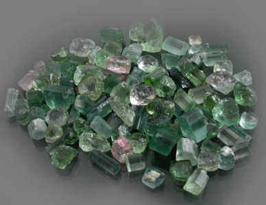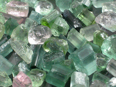 Super lot of Afghan Tourmaline crystal sections & nodules running from a Neon Minty Blue to a Pastel Pink in color. These are ideally shaped for high weight returns with most being nice crystal sections. A few of these stones have the most profound color and this lot is roughly 75%+ Medium to Top Facet Grade. Many of these stones are very slightly included; however, most inclusions should easily cut out or mask up well. There are a few stones that will have to be cut into two gems in order to get clean material and there are a few stones in here that are moderately included; however, even they have the most spectacular color and proper orientation will work miracles in masking the inclusions! |