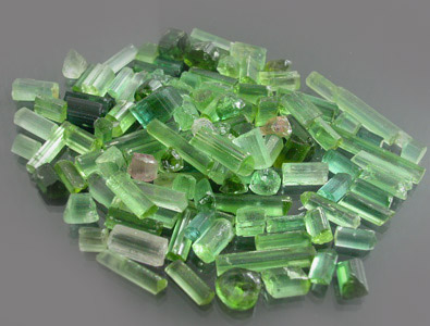 Awesome lot of Neon Green to Sea-Foam Green Afghan Tourmaline Top faceting rough. This lot is primarily a Neon Green to a Sea-Foam Green. I would say that roughly 90% of this material is TOP Facet Grade. These stones have been hand selected for cutting and this is another lot that is ideal for either cutting or select rough resale! This is the material that you see retailing for $10.00+ per carat! There are quite a few killer pieces in here. Most of the stones in this lot will cut eye-clean or better with the bulk being able to facet 10x clean. Practically every stone in the lot is a nice crystal section capable of giving above average yield. The stones are nice and bright and should hold their color well once cut. The price on this just doesn't get any better! |