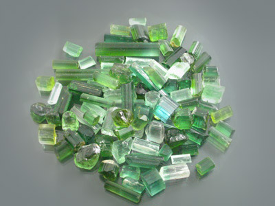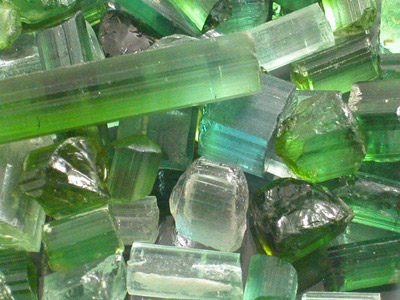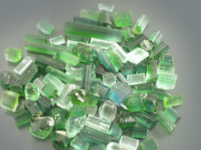 Awesome lot of Neon Green to Turquoise Blue Afghan Tourmaline faceting rough. This lot is primarily a Neon Green to a Sea-Foam Green and there are several strongly dichroic stones in here with a few that almost resemble Sunset Tourmaline from Tanzania & Kenya. I would say that roughly 80% of this material is Top Facet Grade. Most of these stones look as though they have been hand selected for cutting and this is another lot that is ideal for either cutting or select rough resale! This is the material that you see retailing for $6.00+ per carat! There are quite a few killer pieces in here and we are confident you will get a few stones from this lot that go over 2 carats at the eye-clean+ level. Practically every stone in the lot is a nice and chunky crystal section capable of giving above average yield. The stones are nice and bright and should hold their color well once cut. The price on this just doesn't get any better! |