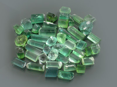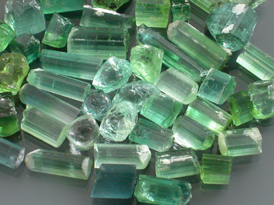 Spectacular lot of some of the BEST COLORED Afghan Tourmaline available running from an Insane Cornflower Blue to an Electric Turquoise Blue. Almost every stone is a nice chunky crystal section (Many of the stones in here are practically preformed because of the crystal structure of Tourmaline). This is mostly select rough and most of the stones in this lot will cut eye-clean or better with the bulk being able to facet 10x clean. This is the material that you see retailing for $12.00+ per carat! This is TOP TOP faceting grade material having almost every bad stone picked out and there are quite a few killer pieces in here. We are confident you will get a spectacular finished gem from practically every stone in here with a little work. This is one of the best colored lots we currently have up and it is one of our best deals likely to go quick so don't pass this by! |