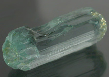 DOUBLY terminated Pale to Pastel Blue Aquamarine Crystal from Pakistan. This looks almost completely clean with the exception of minor inclusions concentrated off at one end. This is being sold as a crystal and should be purchased as such. The crystal is completely intact with a fully terminated cavity on the side! This was the only crystal of its kind in roughly a kilo worth of material we selected through and the only one we purchased. |