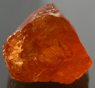 Large Mandarin Orange Spessartite from Afghanistan. This stone is unfortunately slightly to moderately included; however, it is large and gemmy for the locality. There are two options on this stone. You can opt to cut the cleanest stones possible and divide the rough into 2-3 faceted gems that are eye-clean to slightly included and probably between .5 and 1 carats or you can opt to cut a slightly to moderately included single stone. I would probably opt to cab this myself as I think it would make a spectacular cab. You will have to spend a little time on planning for this to get the best yield and clarity but it should yield a spectacular stone or two. |