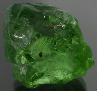 Minor inclusions primarily off towards the periphery that should facet out with a little planning. Please note that this stone has one wisp that runs through the center that is visible in the picture in the middle above. The wisp is probably composed of asbestos and should make a very interesting faceted stone. The inclusions will be visible in the finished stone and this is ideal for those that like inclusion oddities. You may even be able to create a pinwheel from this; however, the waste would be excessive should you choose that path. |