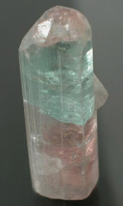 WOW! Well terminated Afghan Tourmaline Gem Crystal. This is a beautiful crystal and the pictures truly do not do it justice. This goes from a Pink base to a Mint Blue and is capped off with Pink again (Technically a Tricolor)! The crystal is VERY gemmy having clean sections internally that probably equal about 1/3 of the crystal weight; however, considering it is doubly terminated with sharp termination - it is being sold as a crystal. |