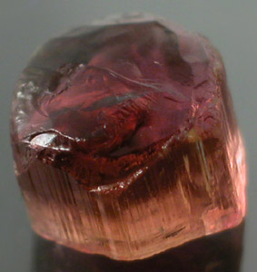 Bubblegum Pink to Hot Pink Tourmaline from the Himalaya Mine. Minor inclusions concentrated on the edge of one side that should facet out with relative ease. This is a chunky crystal section practically preformed for high yield and is capable of cutting eye-clean or better. |