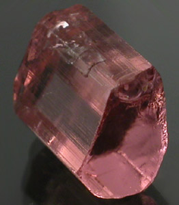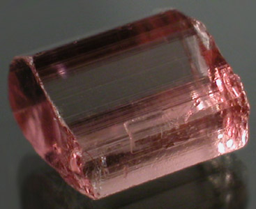 Very bright Bubblegum to Deep Pastel Pink Tourmaline from the Himalaya Mine. This is practically eye-clean with VERY VERY minor inclusions concentrated on the periphery that should facet out with normal faceting. This is a chunky crystal section shaped for high yield and should facet eye-clean or better with ease. |