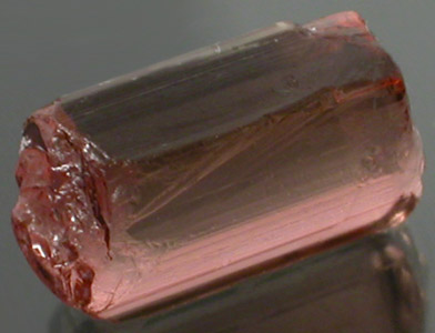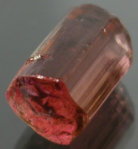 Very bright Bubblegum to Hot Pink Tourmaline from the Himalaya Mine. The stone does have a paper thin rind that is Peachy in color and gives the false appearance of a less Pinker stone in the pictures above. The rind will facet out in normal faceting. This is a chunky crystal section shaped for high yield and should easily facet eye-clean or better. |