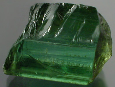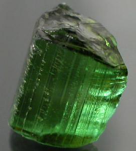 Very bright Neon Green to Yellowish Green Tourmaline from Brazil. Minor inclusions concentrated on the periphery that should facet out with a little planning. This is a chunky crystal section shaped for high yield that can cut eye-clean or better. |
