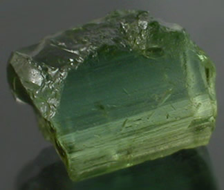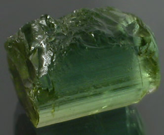 Very bright Yellowish Apple Green Tourmaline from the Himalaya Mine. This is one of our only Green shaded pieces from the Himalaya mine. The stone does have minor inclusions on the periphery that should facet out or mask up well with a little planning. This is a chunky crystal section shaped for average yield that can cut eye-clean or better. |