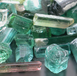 Awesome lot of Afghan Tourmaline containing practically every color of the spectrum. This lot is really indicative of the best Afghanistan has to offer in Tourmaline color and every stone in here has been hand-selected as a cutter! This is TOP TOP faceting grade material having all the bad stones picked. Most of the stones in this lot will cut eye-clean or better with the bulk being able to facet 10x clean. The average stone weight is about 1 carat and this lot is really for commercial cutting & accent stones. The stones are nice and bright and should hold their color well once cut. Most of these pieces are nice and chunky crystal sections capable of giving above average yield. The price on this just doesn't get any better! We have a fairly consistent supply of this material for those interested in picking up additional rough so please feel free to email us with your needs. |