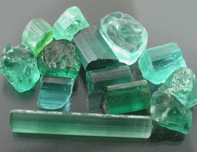 Spectacular lot of Afghan Tourmaline running from a Minty Turquoise Blue to a Sea-Foam Bluish Green. These are a SUPER lovely Neon color for the most part and almost all of these are chunky crystal sections (Many of the stones in here are practically preformed because of the crystal structure of Tourmaline). These are all a nice size with the average being around 4.5 carats. Please note that most of the stones in this lot will cut eye-clean or better with the bulk being able to facet 10x clean. This is the material that you see retailing for $15.00+ per carat! This is TOP TOP faceting grade material having almost all the bad stones picked out and there are quite a few killer pieces in here. We are confident you will get 1-2+ carat gems from practically every stone in here. Practically every stone in the lot is a nice and chunky crystal section capable of giving above average yield. This is one of our best deals and likely to go quick so don't pass this by! |